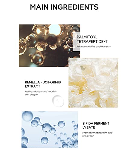 PALMITOYL TETRAPEPTIDE-7 – Reduce wrinkles and firm skin. REMELLA FUCIFORMIS EXTRACT – Nourish skin deeply.
