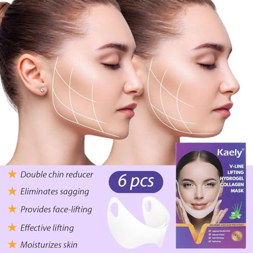 Specification: evpct 6Pcs V Line Lifting Hydrogel Collagen Mask Strap with Aloe Vera and Seaweed, Hydrating and Anti-aging