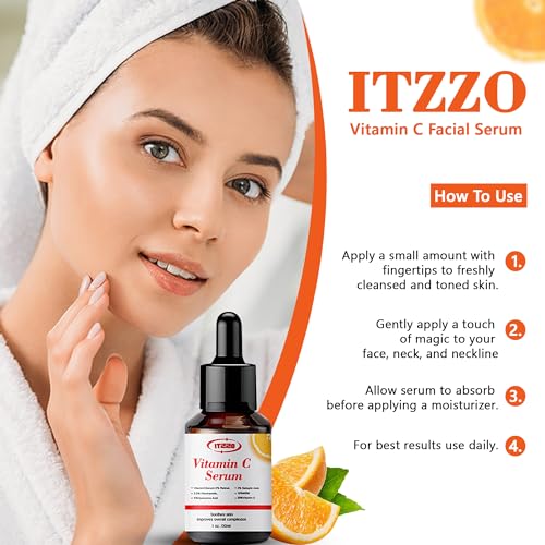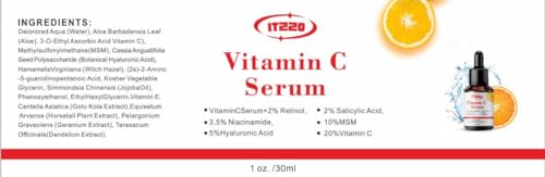 Specification: ITZZO Vitamin C Face Serum With Hyaluronic Acid – Anti Aging Serum – Reduce Dark Spots, Fine Lines & Wrinkles – Retinol, Niacinamide & Salicylic Acid, Brightening Skin Serum for Glowing Skin