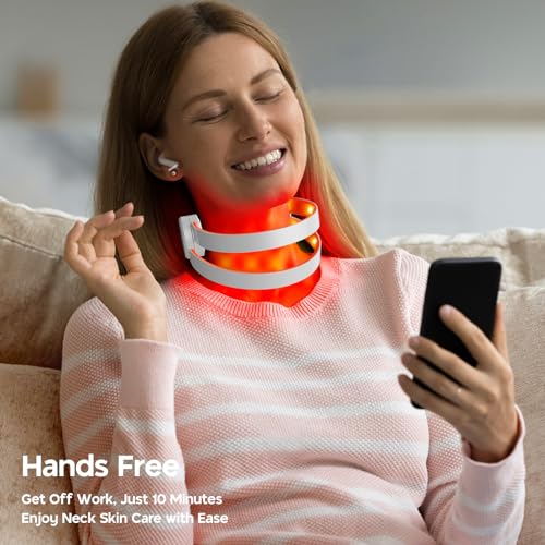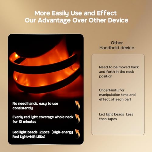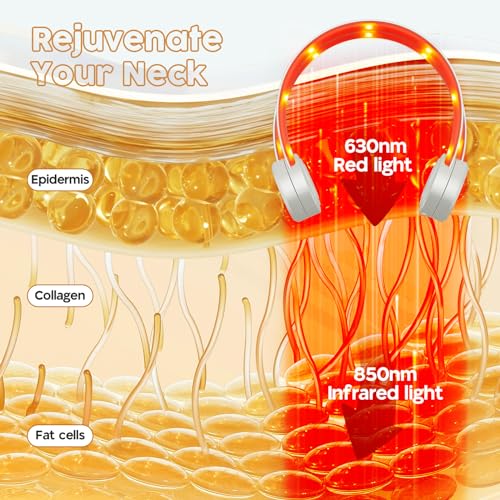 Specification: Red Light Skin Rejuvenation Beauty Device for Neck, Anti Aging Neck Wrinkles treatment Device, Tightening&Firming Neck Skin, Wireless Home Silicone Infrared Light Therapy Led Neck Mask, Hands-Free
