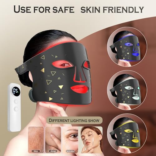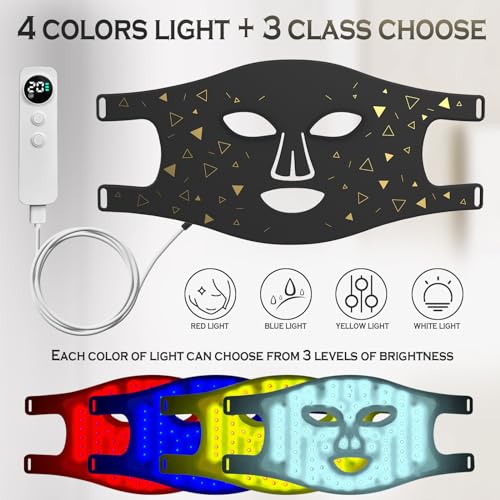【4 Colors and 3 Brightness Levels 】Accord ing to different light energy, our LED face mask light therapy device sets 4 colors working modes,including red, blue, yellow and white, which can be adjusted and help to soothe different skin conditions. Each color with 3 brightness level. Long press the power key to switch on and off, short press to adjust the brightness. It is easy to use and comes with a remote control that allows you to easily switch between different light settings and modes.