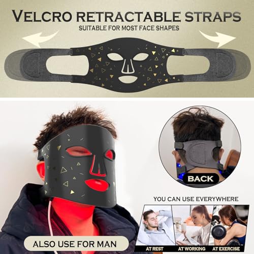 【Lightweight and Comfortable to Wear】The LED face mask light therapy device comes with two of 3D eye pads to protect your eyes well during use and avoid eye discomfort caused by light exposure. Adjustable straps to ensure fit for all face shapes and decompose the gravity of face mask, making more comfortable to wear. It is rechargeable and portable to be used anywhere, anytime. A great gift for yourself, girlfriend, wife and family.