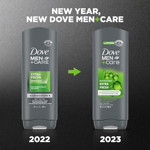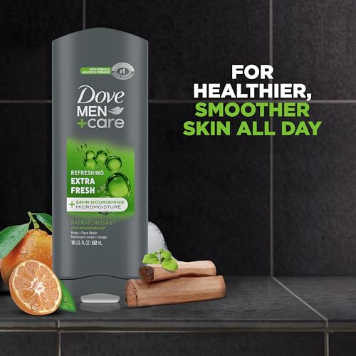 Specification: Dove Men+Care Body Wash Extra Fresh 4 Count for Men’s Skin Care Body Wash Effectively Washes Away Bacteria While Nourishing Your Skin 18 oz