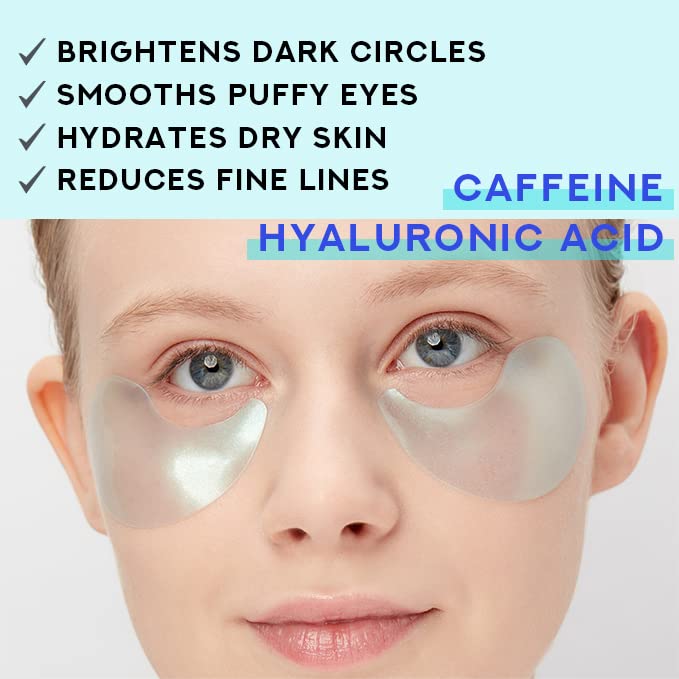 Hyaluronic acid & Caffeine Hydrogel Eye Patches -Under Eye Patch for Puffy Eyes & Bags, Dark Circles and Puffiness, Cooling Patches for Skincare, Puffy Eyes & Bags for Beauty & Personal Care