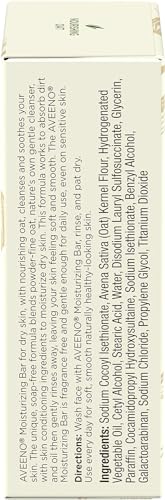 Specification: Aveeno Gentle Moisturizing Bar Facial Cleanser with Nourishing Oat for Dry Skin, Fragrance-free, Dye-Free, & Soap-Free, 3.5 oz (Pack of 6)