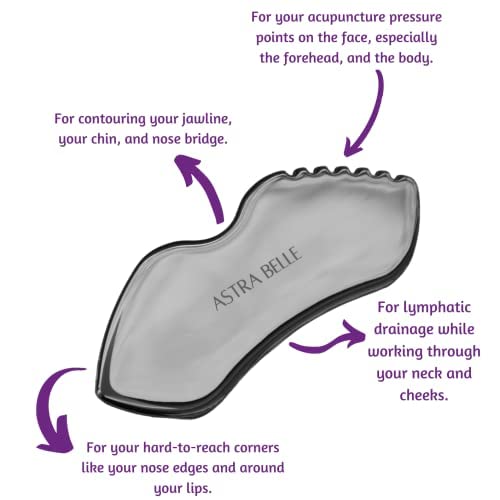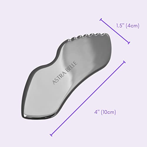 Specification: Stainless Steel Gua Sha from Astra Belle for Facial Skin Care Scraping Massage Tool with Comb Teeth | Facial Massage, Used for Face, Neck, and Around Lips with Travel Pouch or Case