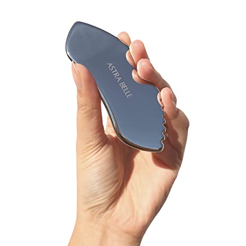 Stainless Steel Gua Sha from Astra Belle for Facial Skin Care Scraping Massage Tool with Comb Teeth | Facial Massage, Used for Face, Neck, and Around Lips with Travel Pouch or Case