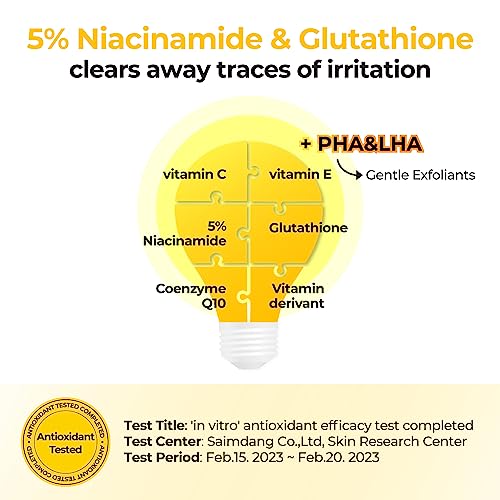 Specification: numbuzin No.5+ Niacinamide Concentrated Toner Pad | Glutathione, Niacinamide, PHA & LHA, 180ml/70pads/6.08fl.oz