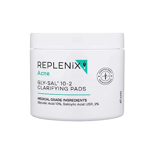 Replenix Gly-Sal Clarifying Pads, Medical-Grade Exfoliating Cleansing Wipes for Acne-Prone Skin, Oil-Free Facial Treatment with Witch Hazel, Contains Glycolic & Salicylic Acids (60 ct.)