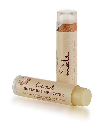 Service your own delicate lips with the delectable and functional MELT HONEY BEE LIP BUTTER. Packed with skin softening oils and butters, this natural hand made product will make you (or perhaps someone else) want to lick your lips all day! INGREDIENTS: beeswax, mango butter, almond oil, grape seed oil, virgin coconut oil, cocoa butter, shea butter, olive oil, jojoba oil, castor oil, flavor oil, and vitamin E.