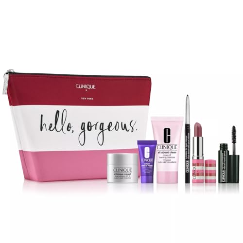 SMART DE-AGING SUPER STARS Gifts Include: Clinique Smart Clinical Repair Wrinkle Correcting Serum, 5ml Clinique Smart SPF 15 Custom-Repair Moisturizer, 15ml All About Clean Rinse-Off Foaming Cleanser, 30ml Quickliner For Eyes Intense Eyeliner in Intense Black, .005oz/0.14g Clinique Pop Lip Colour + Primer in Love Pop, .13oz High Impact Mascara in Black, .14oz Clinique Cosmetic Bag