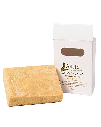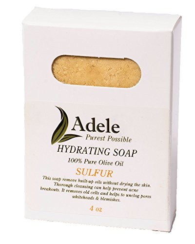 Acne/Sulfur Soap Product Info: Removes built-up oils without drying your skin. Thorough cleansing can help prevent and clear acne breakouts as well as unclog pores, whiteheads, and blemishes. Use daily for a week to achieve beneficial results. Ingredients: Olive oil, distilled water, Sodium Hydroxide, Sulfur. Directions for use: Lather Sulfur soap on wet face and rub with circular motion. Wait until soap lather is dry. Rinse face thoroughly. For best results use with Adele Facial Mist