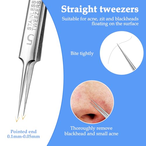 Precision Tweezers Kit: Designed for precise manipulation and extraction with precision-aligned tips poping puncture mature acne easily. Curved tweezers with hook tip suit for stubborn acne around nose wing, eye corner, or some place hard to touch.