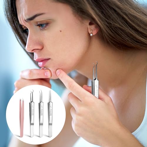 Specification: 4 PCS Blackhead Remover Tool Include Blackhead Tweezers and Ingrown Hair Tweezers, Precision Blackhead Pimple Extractor for Pimple Whitehead Ance, Curved Tip Lash Tweezers for Eyelash Extension