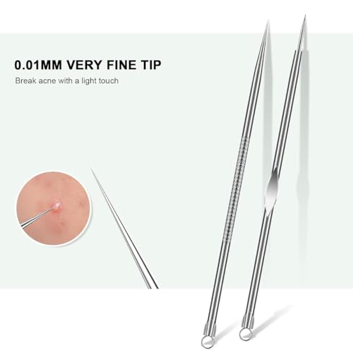 Anti-allergic Design: The professional electroplated needle and stainless steel coating won’t cause sensitivity issues. The pimple extractor kit is suitable for all types of skin.