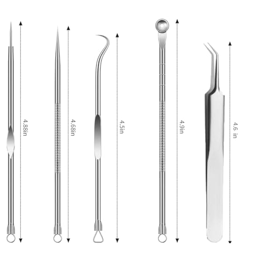Specification: Blackhead Removal,Pimple Popper Tool Kit Made of Stainless Steel, Professional Facial Blackhead Tweezers,Clip for Whiteheads, Acne(5 PCS)