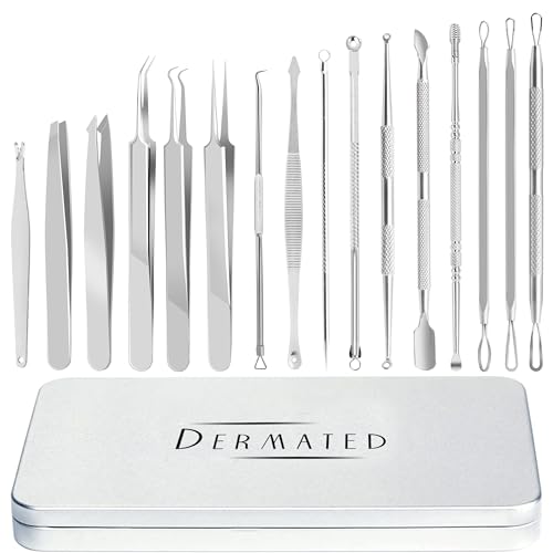 ![Dermated [16 Pack] Blackhead Remover Tools Pimple Popper Tool Kit | Stainless Steel Professional Pimple Extractor Tool Kit for Blackheads, Blemish, Comdone, Acne, Zit, and Whiteheads for Face & Nose](https://m.media-amazon.com/images/I/41xinQs4uvL.jpg)