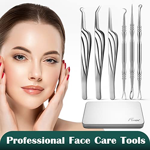 Specification: FVION Blackhead and Acne Extractor Kit, Professional Pimple Popper Tool Kit, Acne Tweezers and Blackhead Remover Tools for Face, 6 PCS Surgical Extractor Pimple Popping Tools