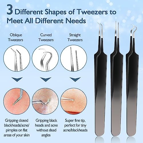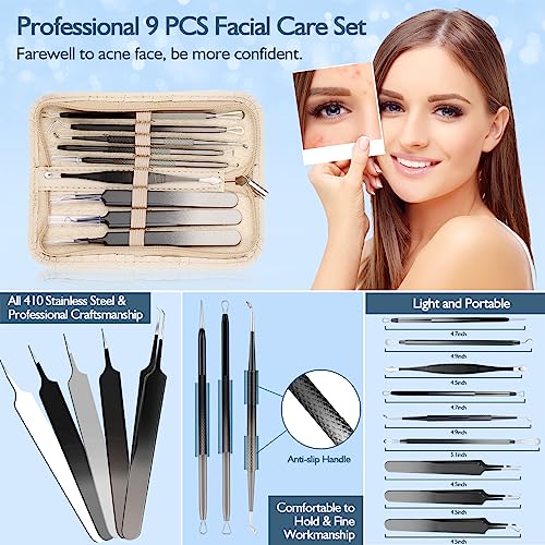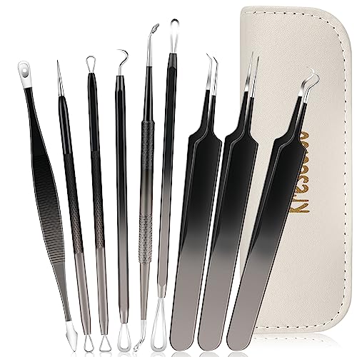 Specification: Kresecioo Pimple Popper Tool Kit Blackhead Remover Tools, 9 PCS Professional Pimple Acne Tools Extractor Kit for Nose Face, Stainless Blemish Whitehead Zit Popper Tool with a Leather Bag(Black)