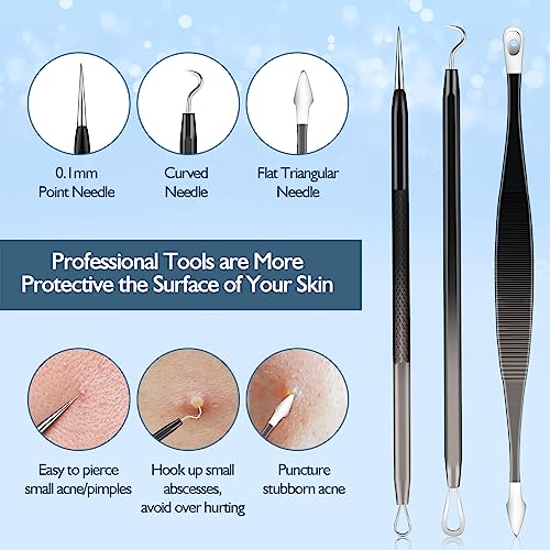 【Warm Tips】Please wipe acne tools extractor kit with rubbing alcohol before and after each use on skin; Do Not use any blackhead tweezer or acne needle tools before the acne matured; Be gently during use; Please refer to the instruction manual presented by us for the specific operation method. What’s more, if you have any question, please contact us.