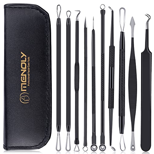 Specification: Pimple Popper Tool Kit 10 Pcs, MENOLY Newest Blackhead Remover Pimple Comedone Extractor Tools for Easy and Fast Removal of Blackheads, Pimples and Blemish on Face, with Elaborate Leather Bag