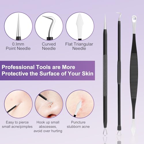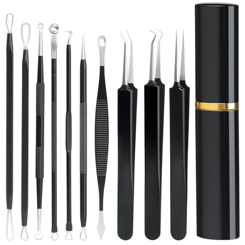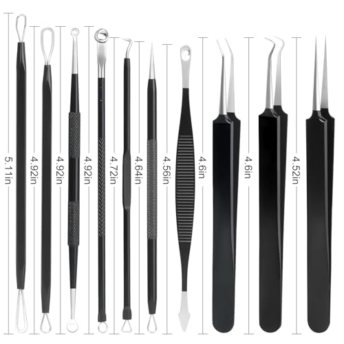 Specification: Pimple Popper Tool Kit,10 Pcs Professional Blackhead Remover Comedones Extractor for Easy Removal for Pimples,Blackheads,Zit Removing, Facial and Nose, Acne Removal Kit with Metal Box (Black)