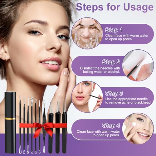 【Precaution】 We suggest to use the stainless steel extraction tools after the acne mature enough, and please wipe all tools with alcohol before and after each use. Warm tips: the pimple popper tools kit is very sharp, it is risky for child to touch. Please keep far away from children, in case unexpected injure happen.