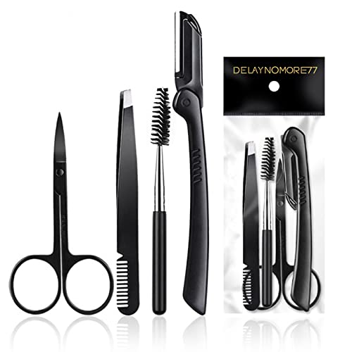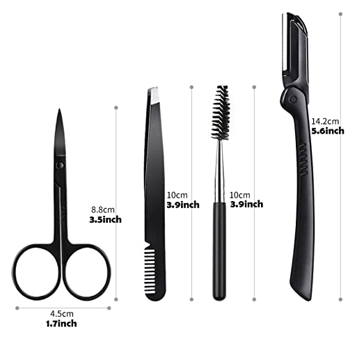 Eyebrow Razor Kit, 4 in 1 Professional Eyebrow Grooming Set for Women and Men, Including Eyebrow Razor Trimmer, Tweezer, Scissor, Eyelashes Roller, Storage Bag