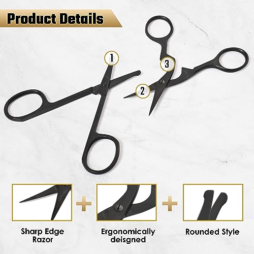 Precision Brow Trimmer Scissors: Our eyebrow comb scissors is made from high-quality stainless steel with black coating, ensuring perfect hairdressing shears, hair cutting scissor, beard trimmer and facial hair trimmer