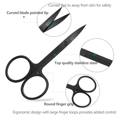 Eyebrow Scissors with Comb, KAJUDA Facial Hair Small Grooming Scissors For Men Women – Eyebrow Trimmer Scissor for Eyebrows, Nose Hair, Mustache, Beard, Eyelash – 3PCS Black