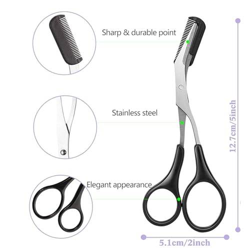 🌸 Easy To Use – Rounded precision blade tip for safe use, extra sharp pointed tips for precision trimming, Comb and scissor combination allows for precision trimming to make sure your eyebrow type is you want.