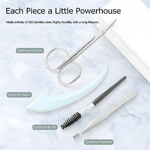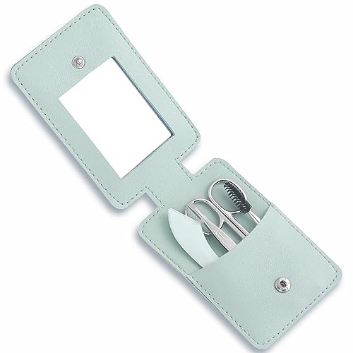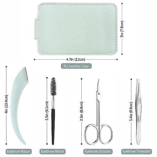Specification: Eyebrow Trimmer Kit, 5-in-1 Set with Eyebrow Scissors, Eyebrow Razor, Tweezer, Brush, and Mirror for Women, Includes Leather Carry-Around Bag (Green).