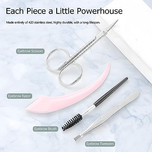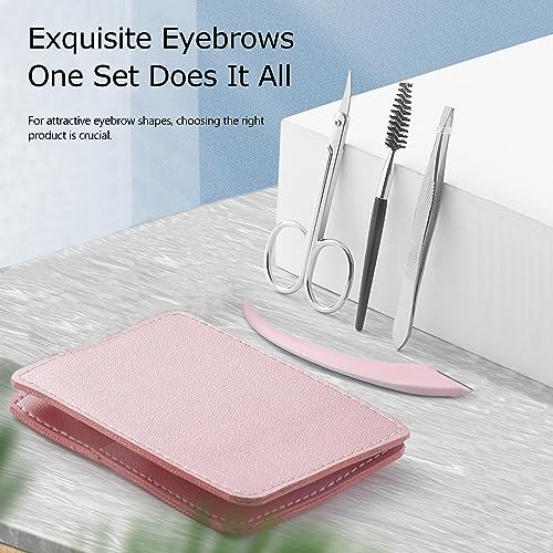 Specification: Eyebrow Trimmer Kit, 5-in-1 Set with Eyebrow Scissors, Eyebrow Razor, Tweezer, Brush, and Mirror for Women, Includes Leather Carry-Around Bag (Pink).