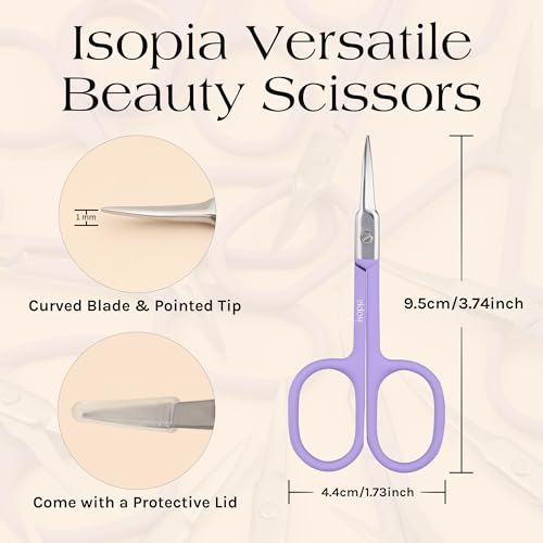 ISOPIA Multifunctional Beauty Scissors,Eyelash Scissors,Grooming Scissors – Eyebrow Scissors – Small Curved Stainless Steel Manicure for Women