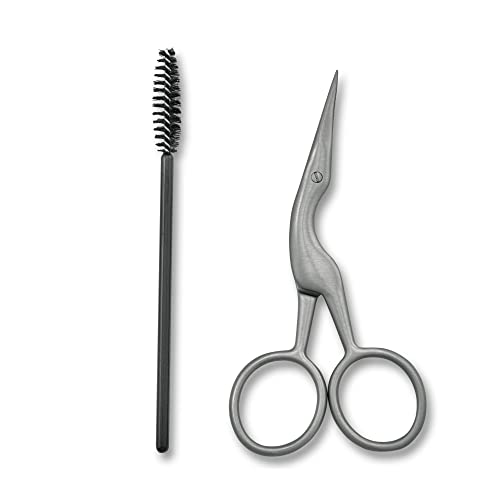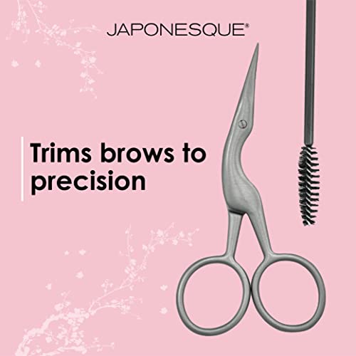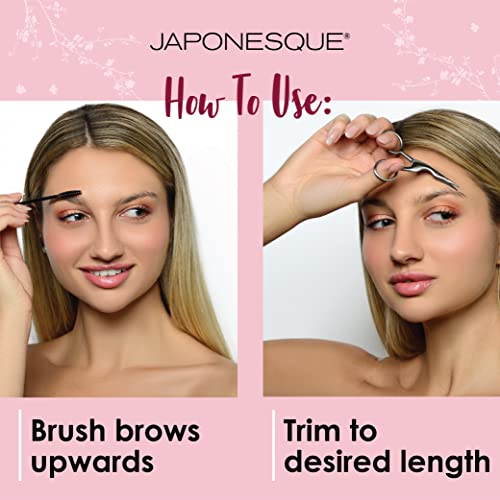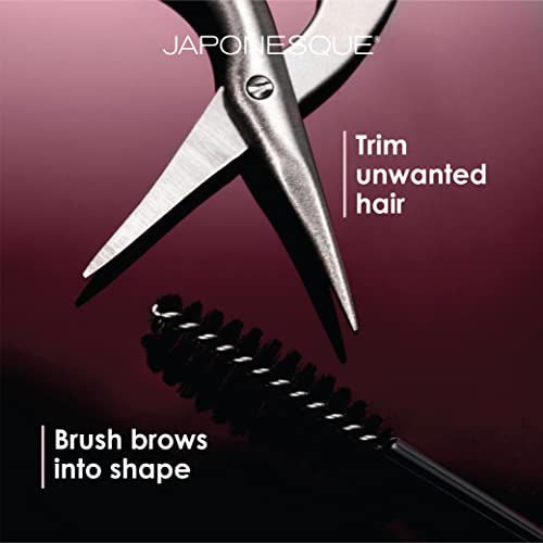 JAPONESQUE Brow Scissors and Spoolie, Stainless Steel Scissors for Brow Grooming and Trimming, Brush Tool for Brow Shaping