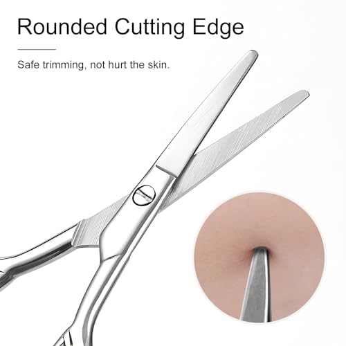 Kootinn 2Pcs Men Women Facial Hair Small Grooming Scissors – Eyebrow, Nose Hair, Mustache, Beard, Eyelashes, Ear Trimming Kit – Safety Tip Clippers with Curved and Rounded Design For Hair Cutting
