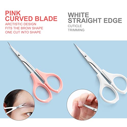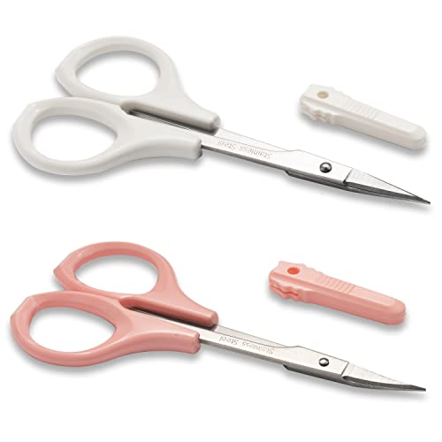 PAFASON Stainless Steel Curved and Straight Eyebrow Grooming Scissor Set with Safety Cover for Trimming Shaping Eyelash Extensions Eyebrow