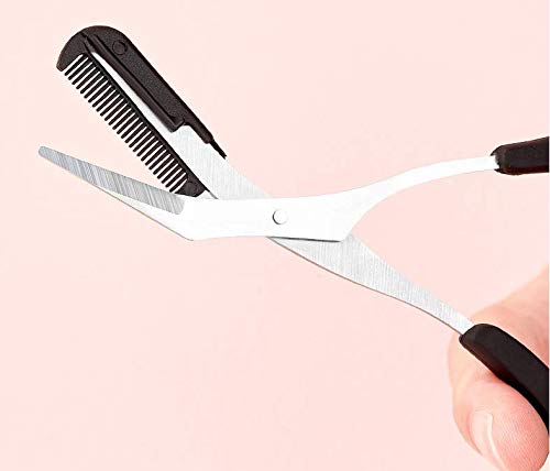 Professional Precision Eyebrow Trimmer Scissors Scissors with Comb and Non Slip Finger Grips Black Silver Tone for Men Women Hair Removal Grooming Shaping Black