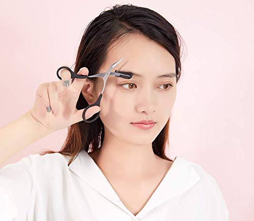Specification: Professional Precision Eyebrow Trimmer Scissors Scissors with Comb and Non Slip Finger Grips Black Silver Tone for Men Women Hair Removal Grooming Shaping Black