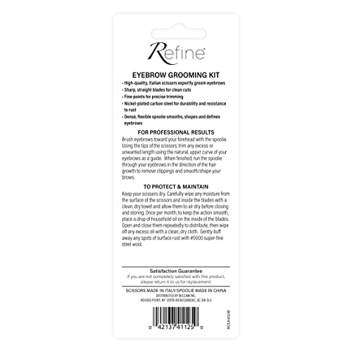 Create and maintain beautifully sculped eyebrows with the Refine Eyebrow Grooming Kit. The high-quality, Italian-made scissors feature pointed tips to precisely trim long, unruly eyebrow hair. Their perfect alignment along the entire blade allows you to quickly shorten several hairs at once or isolate a single, troublesome strand. Whether you prefer a full, natural look or a sleek, editorial look, these scissors give you the flexibility to frame your face with the perfectly shaped eyebrow. The spoolie preps brows for trimming, brushes away clippings and smooths and defines brows for a finished result. Ideal for women and men, these multi-tasking personal care scissors can be used to trim and shape mustaches and beards and cut long, unwanted hair from noses, ears, face and body.