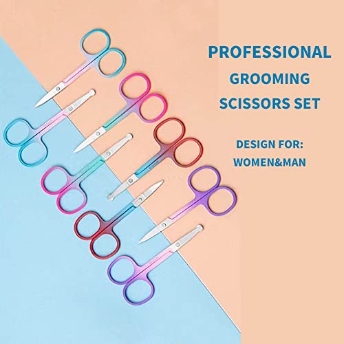 Stainless Steel Hair Grooming and Trimming Scissors Set,Facial Hair Small Grooming Scissors For Men Women Eyebrow, Nose Hair, Mustache, Beard, Eyelashes (Silver-(B))