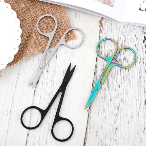 WLLHYF 3 Pack Small Eyebrow Facial Nose Hair Grooming Scissors Stainless Steel Mustache Eyelashes Trimmer Travel Scissors Kit Mini Curved Rounded Scissors for Eyebrow Cuticle Trimming Nasal Clippers