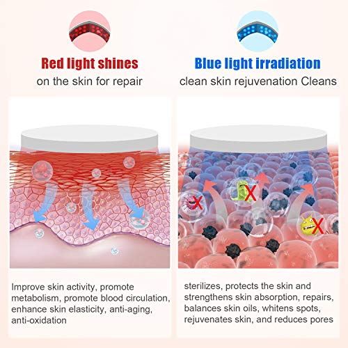 *Smart & Widely Applicable — Ergonomic design, perfectly fits the contour of the face, the foldable ring shape meets all face shapes, and the length of the headband is adjustable. This instrument uses different intensities of red and blue alternately to make the skin glow and effectively improve facial lines and double chin.NOTE: Cannot be used with metallic substances(such as metal dental implants).