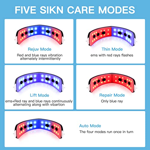 Smart & widely applicable — Ergonomic design, perfectly fits the contour of the face, the foldable ring shape meets all face shapes, and the length of the headband is adjustable. This instrument uses different intensities of red and blue alternately to make the skin glow and effectively improve facial lines and double chin.NOTE: Cannot be used with metallic substances.