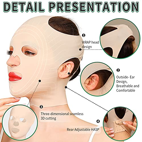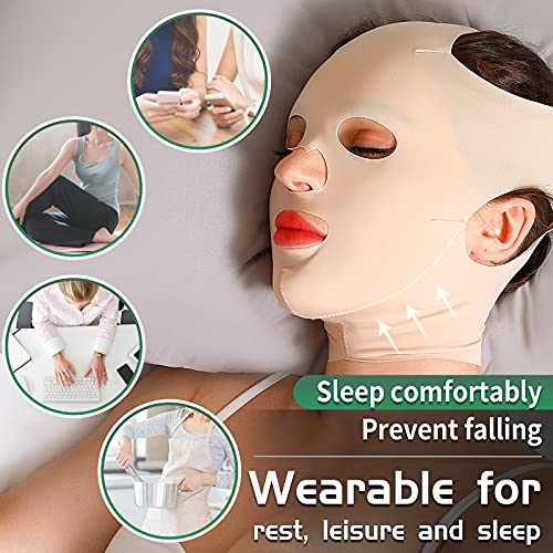 JLK-ZHOU Reusable Facial Slimming Mask Anti Wrinkle V Full Face Lifting Chin Cheek Lift up Slim Belt Band Strap Slimming Thin Mask Sleeping Belts (Full Face Belts)