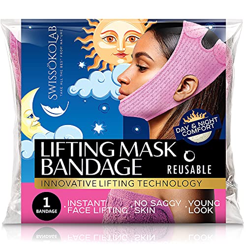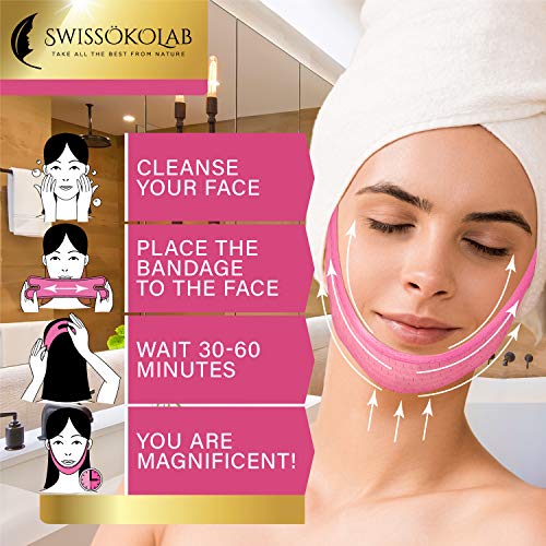 SWISSOKOLAB Reusable Face Slimming Strap Double Chin Reducer V Line Mask Chin Up Patch Chin V Up Contour Tightening Firming Tape Neck Bandage V-Line Lifting Patches V Shaped Belt (Lifting Bandage)