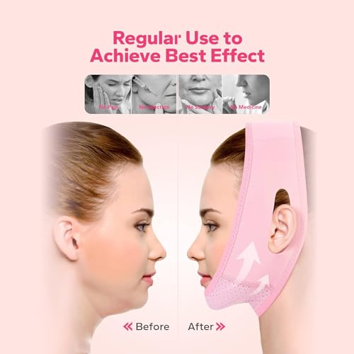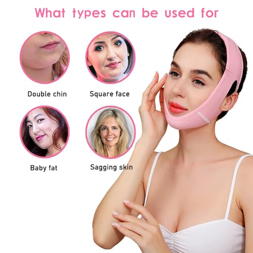 Specification: V Line Lifting Mask with Chin Strap for Double Chin for Women, Chin Up Patch, Chin Strap, V Shaped Belt, V Shaped Face Mask for Saggin Reusable V Shaped (Pink)