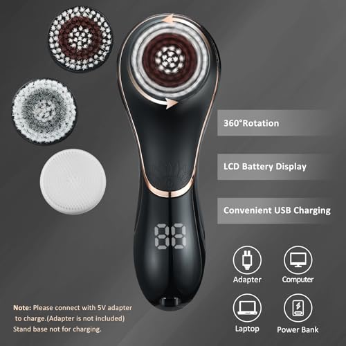 Specification: Facial Cleansing Brush Face Scrubber Exfoliator Rechargeable IPX7 Waterproof Electric Spin Cleanser Device for Exfoliating, Massaging and Deep Cleansing Removing Blackhead, Face Massaging