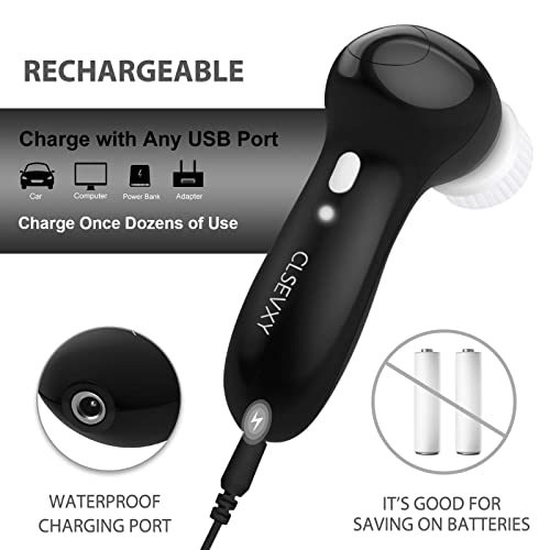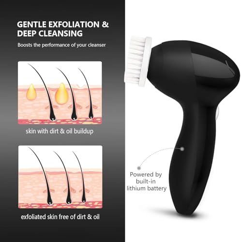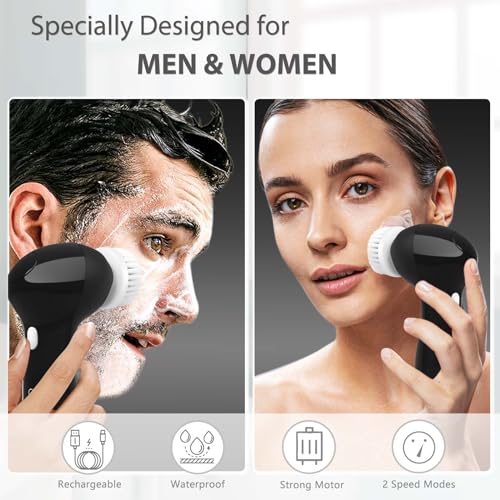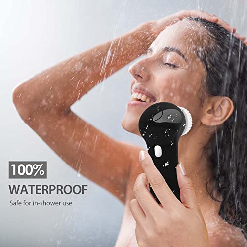 Facial Cleansing Brush Face Scrubber: USB Rechargeable IPX7 Waterproof Electric Spin Cleanser Brush for Women & Men with 7 Brush Heads, Face Brushes for Cleansing and Exfoliating, Massaging(Black)