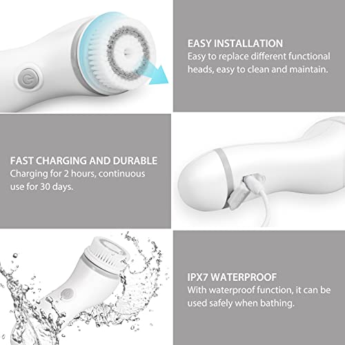 Rechargeable Facial Cleansing Spin Brush Set with 3 Exfoliation Brush Heads – Waterproof Face Spa System by CNAIER – Face Brushes for Cleansing and Exfoliating